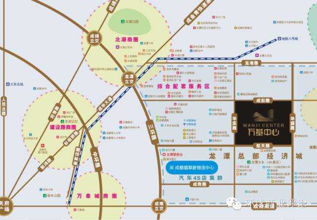 “万基中心”位于成都中心城区龙潭总部经济城内,地处总部城两条主要形象大道(航天路与华盛路)交汇处,著名景点龙潭水乡旁。项目周边配套完善,交通便捷,属市中心半小时经济圈。