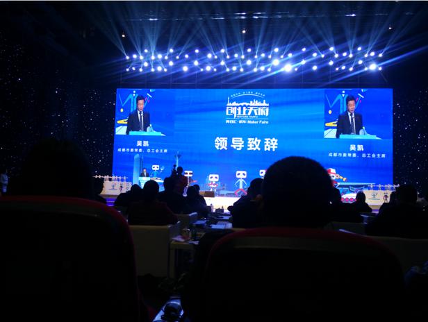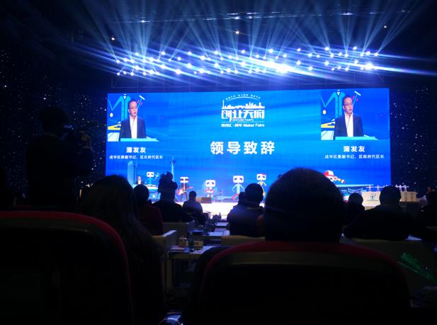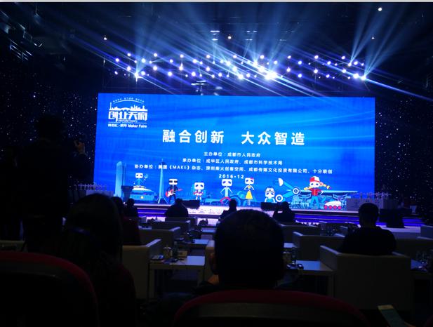 2016年12月2日上午9点,我司受邀参加由成都市人民政府主办,成华区人民政府、成都市科学技术局联合承办的“融合创新、大众智造”创新创业大会。市委常委、市总工会主席吴凯,市委副秘书长易恩弟,市政府副秘书长杨羽,市科技局局长卢铁城,成华区委副书记、代区长蒲发友等领导出席活动;《Make》杂志创始人(美国)Dale Dougherty,创客教育推手(美国)Michael Shiloh,生活艺术大师(美国)Judy Castro,科技时尚造型师(加拿大)Shannon Hoover,创客社区达人(日本)Masakazu Takasu,成都理工大学副校长郭朝辉,Seeed科技/柴火创客空间创始人潘昊,深圳摩伦科技有限公司总经理魏章平等嘉宾参加活动。大会围绕“融合创新、大众智造”主题,展示最新创新创业成果,分享国内外前沿创新理念,交流创业体会和经验。