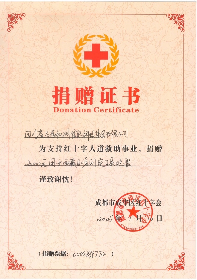 灾情牵动着全国人民的心。四川万基和润信息科技集团有限公司董事长郑强同志心系灾区,第一时间启动企业仁爱基金响应政府抗震救灾号召,通过筹备,公司共向成华区红十字会捐赠善款 2 万元,用于西藏日喀则定日县抗震救灾工作。郑强同志表示,为受灾群众贡献一份力量是企业的基本社会责任和担当,希望这笔善款能够为灾区的救援和重建工作提供一些帮助。