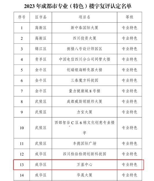 万基中心通过2023专业特色楼宇的认定
